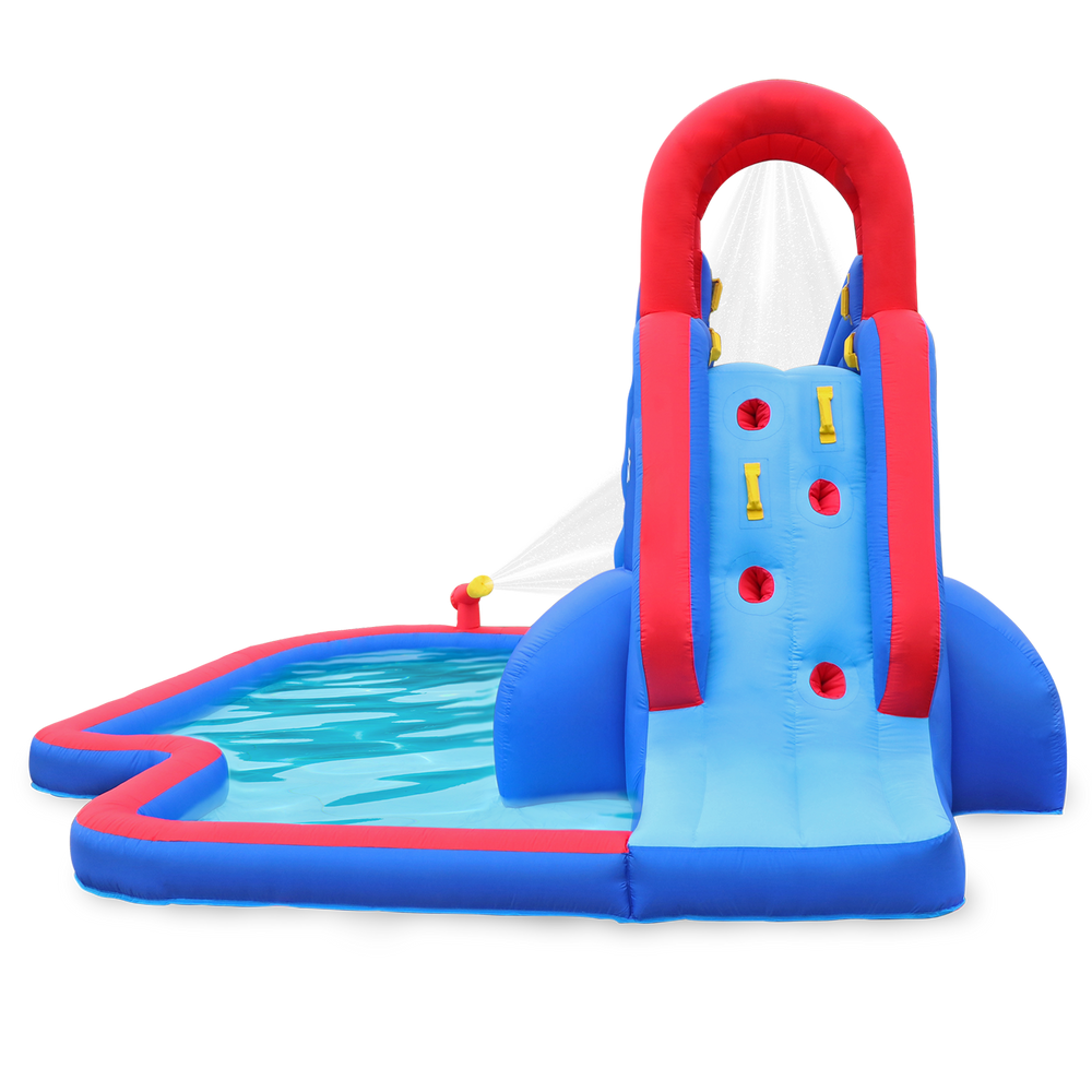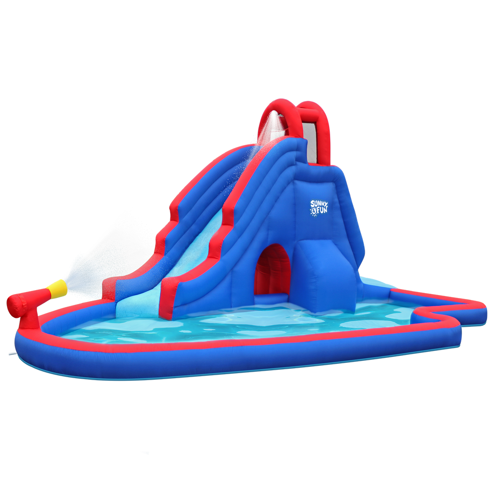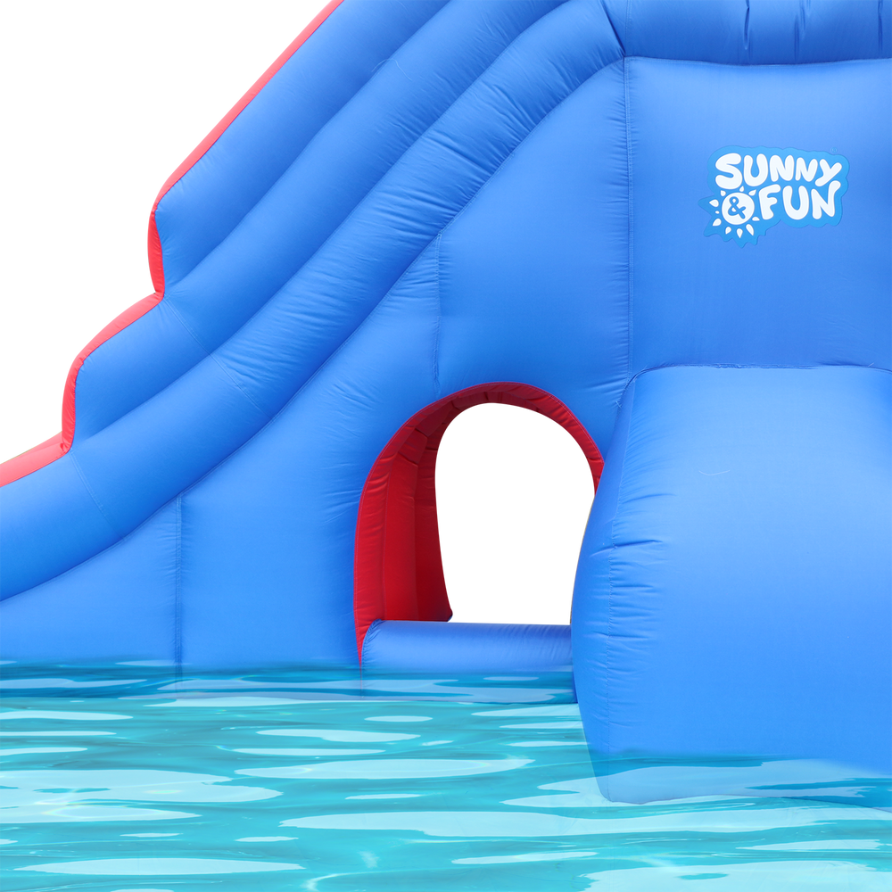 Make playtime an adventure with this watery wonder from Sunny & Fun. Easily set up in minutes with the included air pump, this inflatable water park features a climbing wall on one side leading to a delightful water slide for the little ones, while additional features provide hours of entertainment to beat the heat.